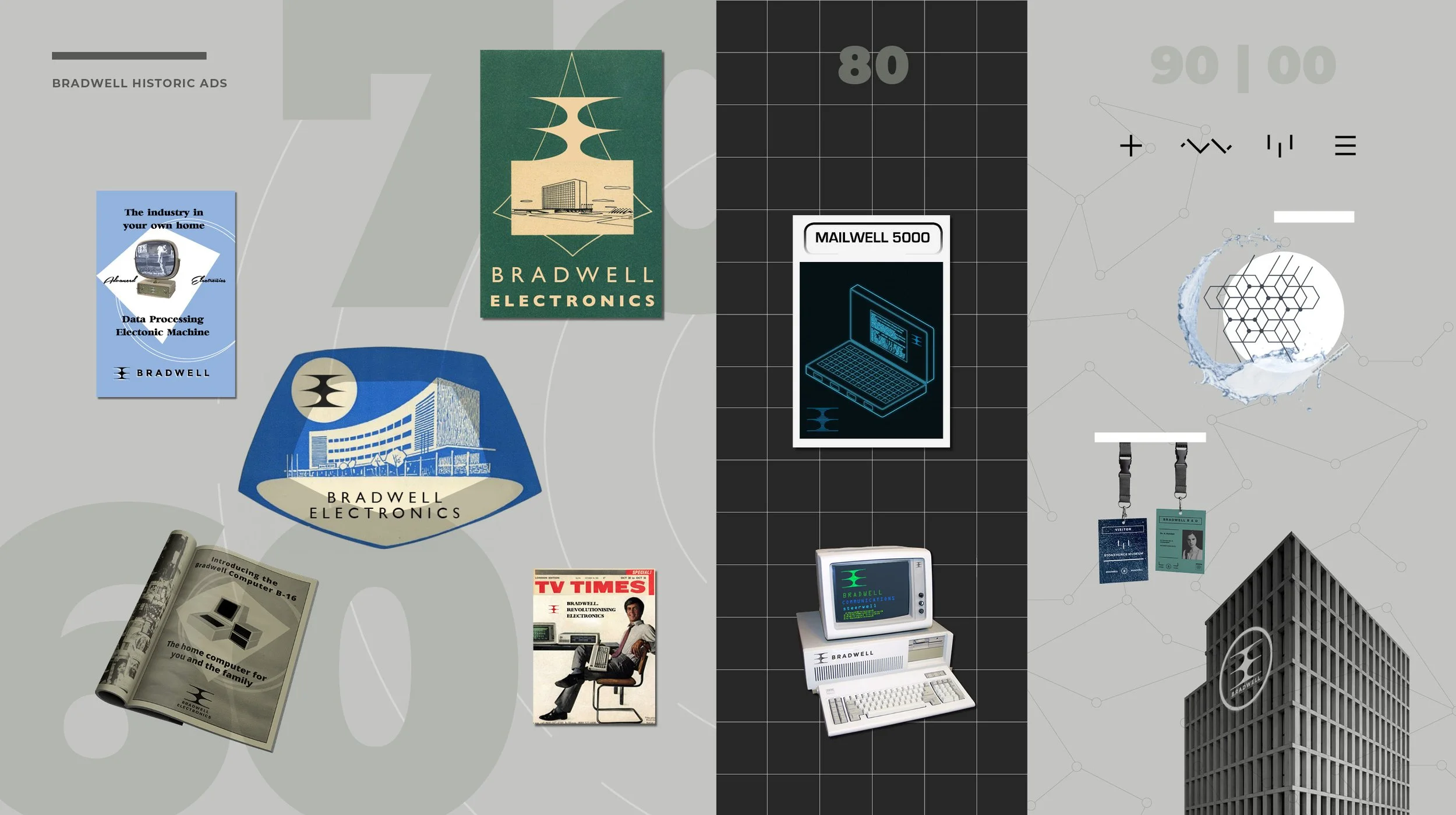 Historic brand timeline of Bradwell Electronics to support the game narrative. From its founding days in the 1960s to 2020.
